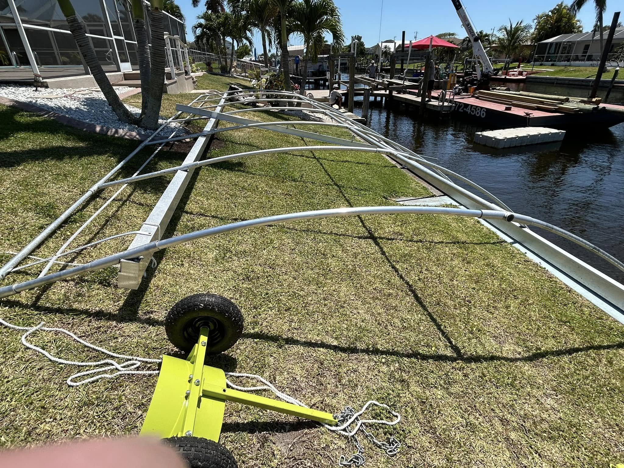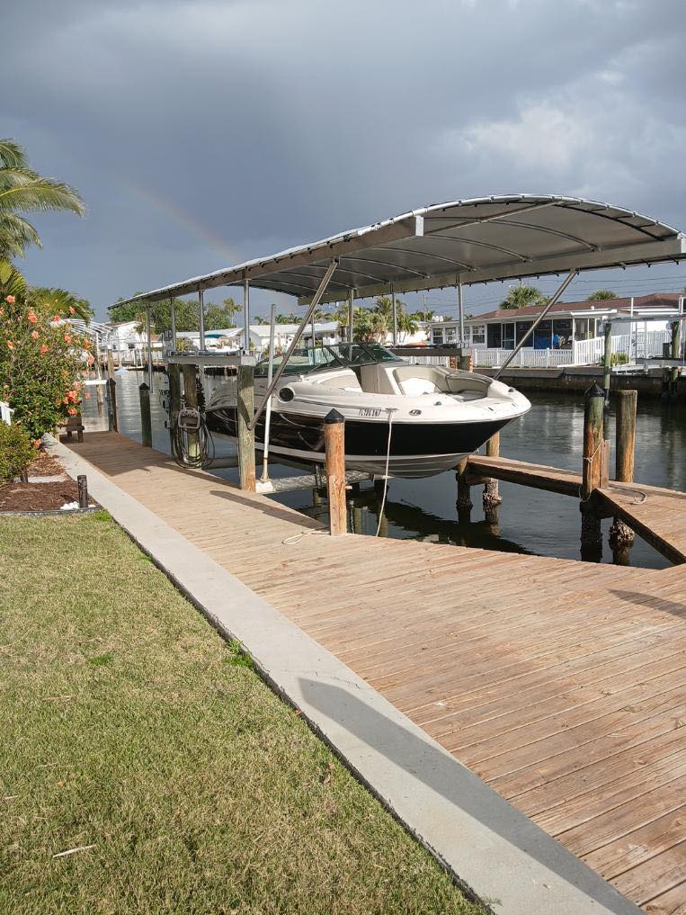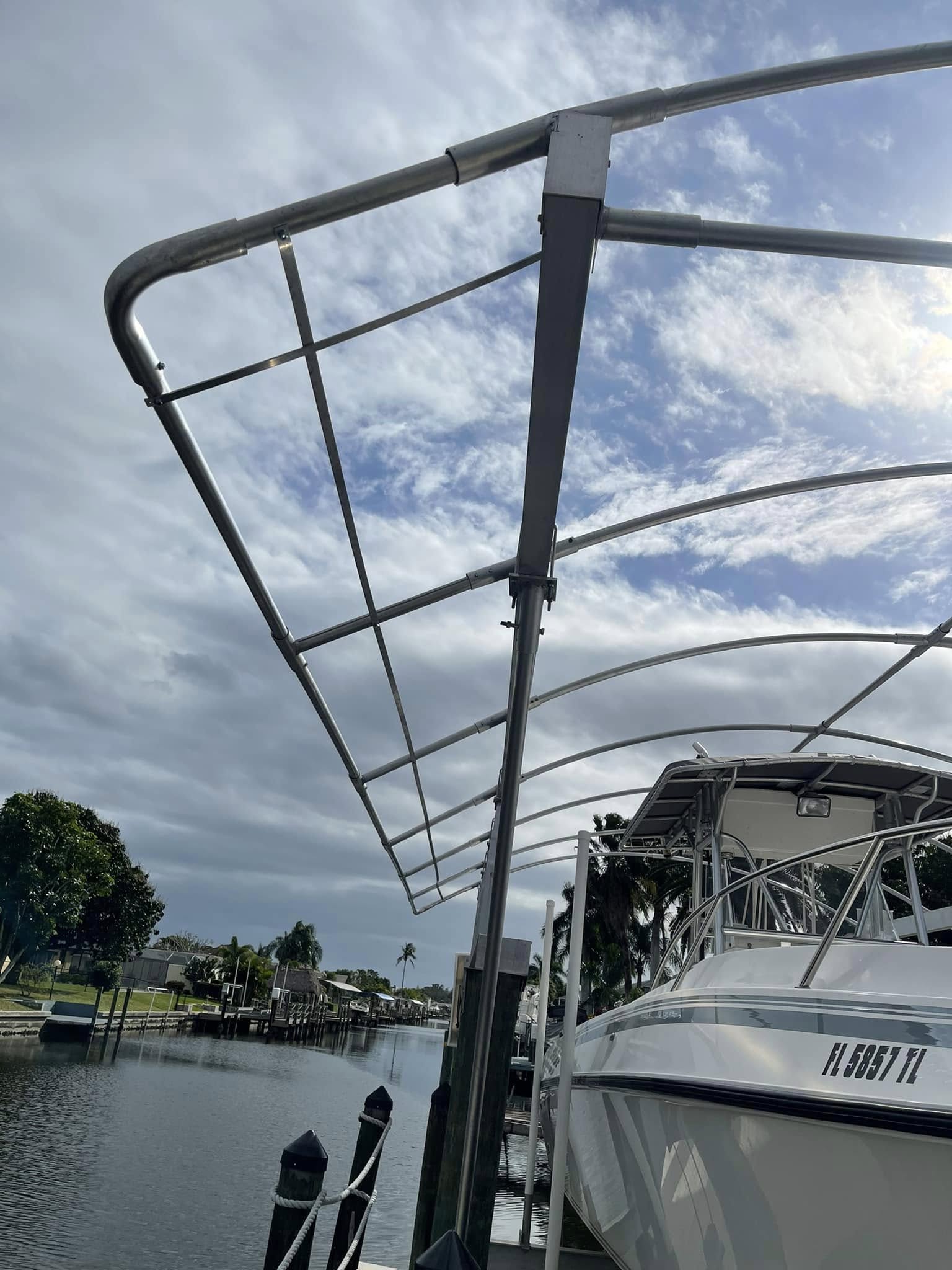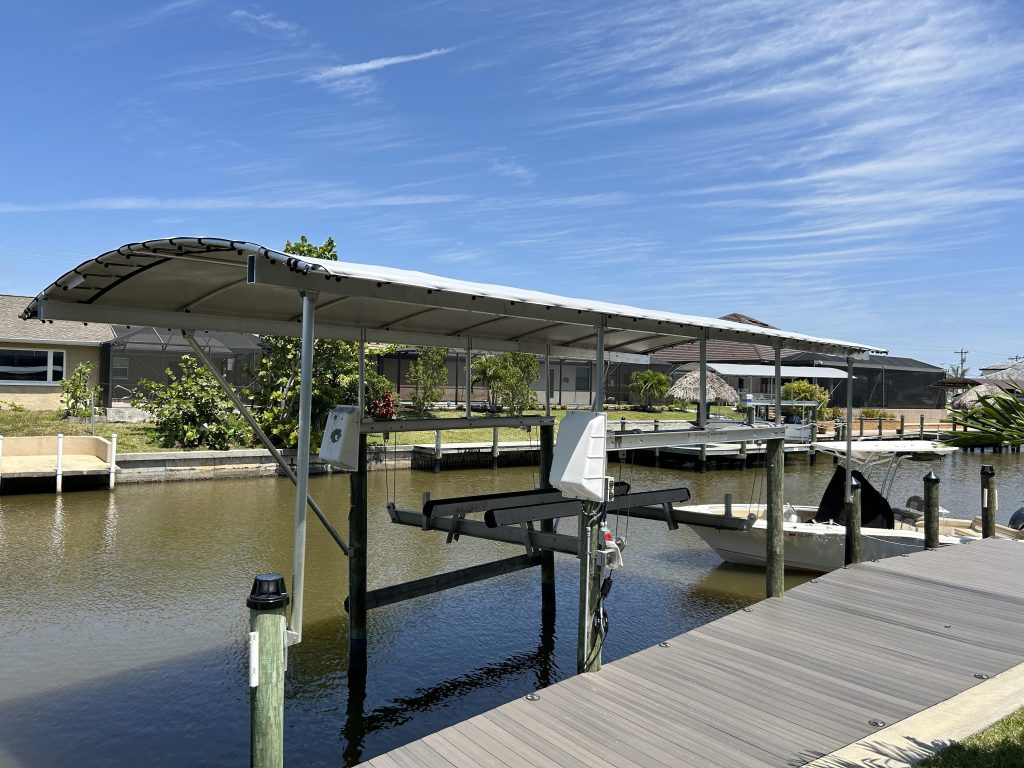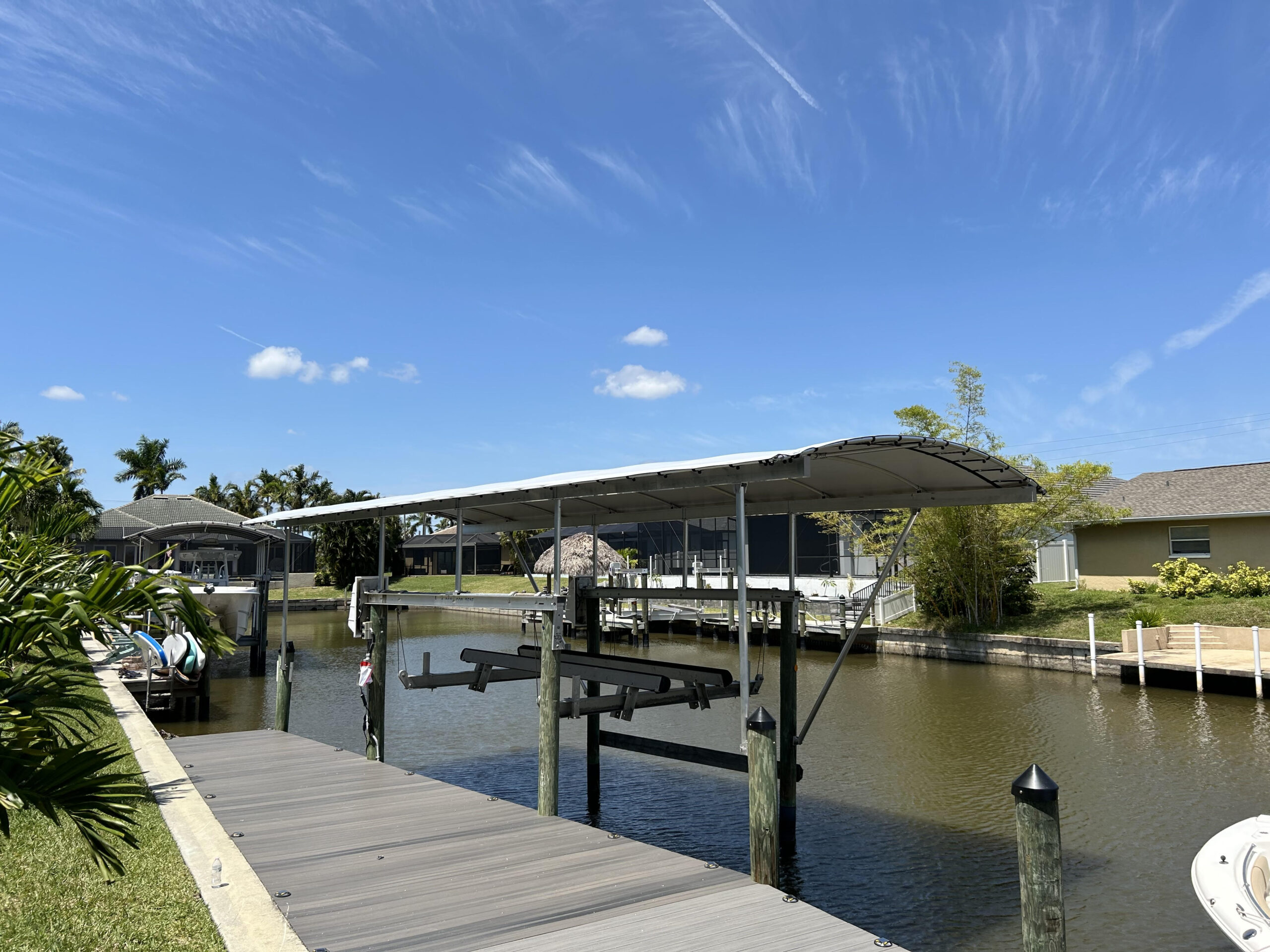 Custom aluminum boat lift canopies, flood panels, and waterfront accessories — designed, fabricated, and installed right here in Southwest Florida.